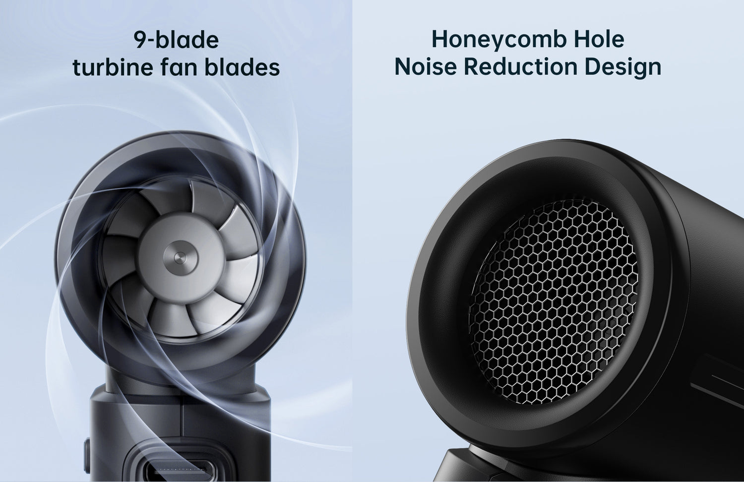 Ultimate Cooling Experience: JISULIFE handheld turbo fan adopts an advanced 9-blade design and is paired with a high-speed three-phase brushless motor to provide a maximum wind speed of up to 10m/s. Maximum 40000 RPM, four times that of ordinary handheld fans.